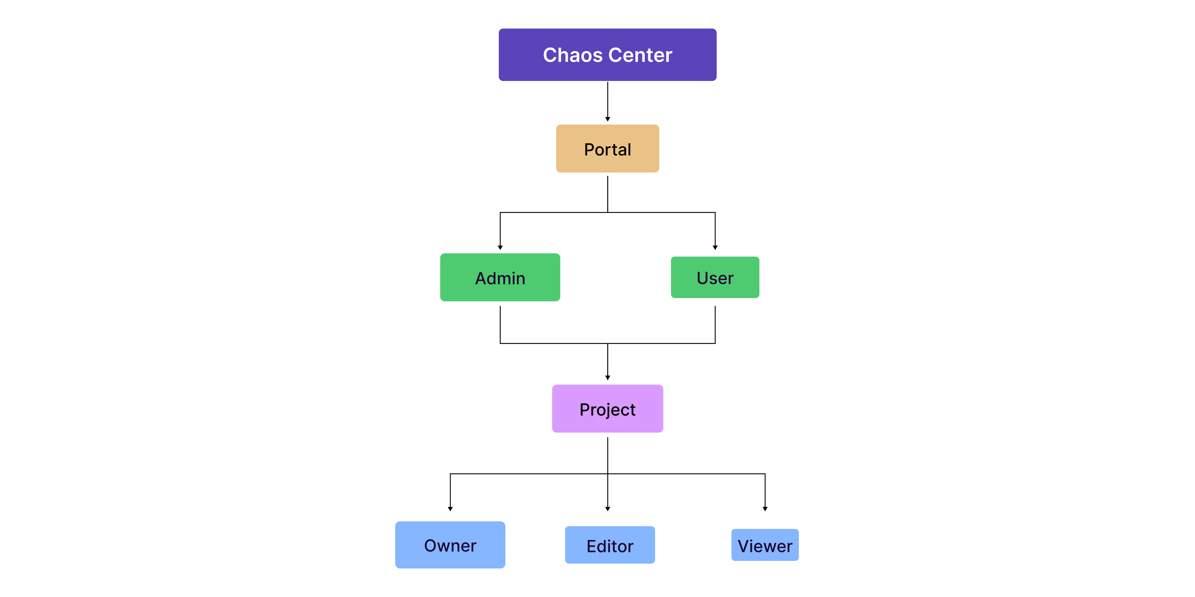 The project management feature is the second level of privilege layer delivered by the ChaosCenter and a breakdown can be observed in the below diagram: