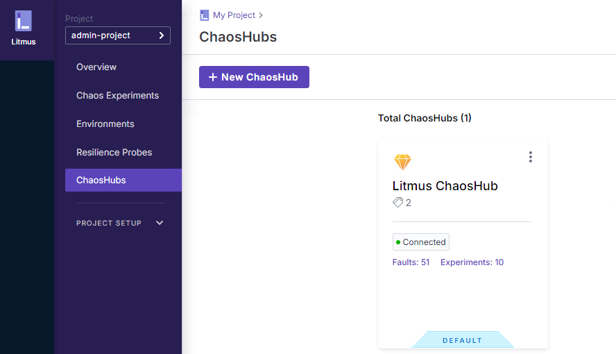 By default, a public ChaosHub is provided when the ChaosCenter is installed for the first time.