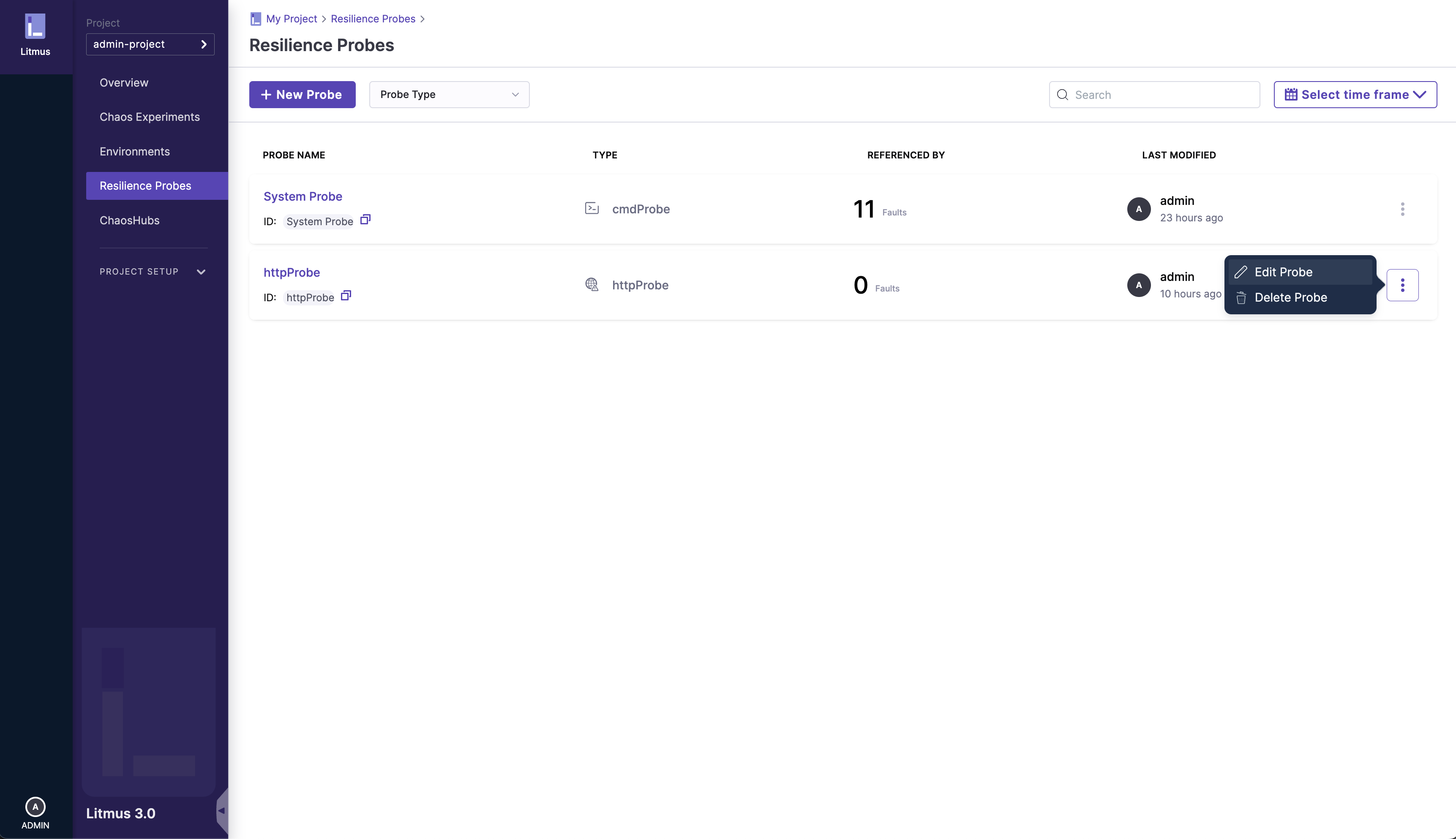 In the Resilience Probes page, go to the specific probe you wish to edit: